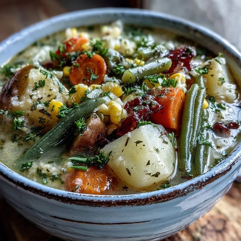 Pin It The kitchen window was frosted at the edges when I pulled out my biggest pot and started chopping vegetables without a plan. Snow was falling in thick, lazy flakes, and I had a fridge full of odds and ends that needed using. What came together that afternoon was this soup, creamy and herb-scented, the kind that makes you forget about the cold outside. I've been making it ever since, every time the world feels hushed and white.