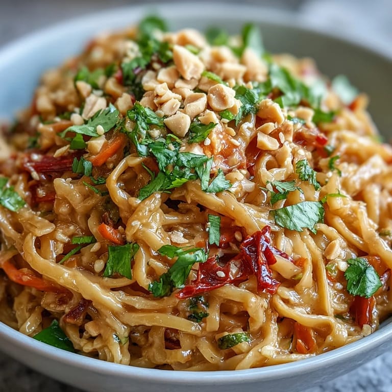 Pin It I discovered this peanut noodle bowl on a sweltering afternoon when my fridge felt emptier than my energy levels. A jar of peanut butter, some wilting vegetables, and a box of rice noodles somehow transformed into something so satisfying that I've made it at least once a week ever since. There's something almost magical about how a simple dressing can elevate humble noodles into a complete meal that tastes far more complicated than it actually is. The first time I served it to friends, they were genuinely shocked it took only 30 minutes from start to finish. Now it's become my go-to when I need something that feels both impressive and achievable.