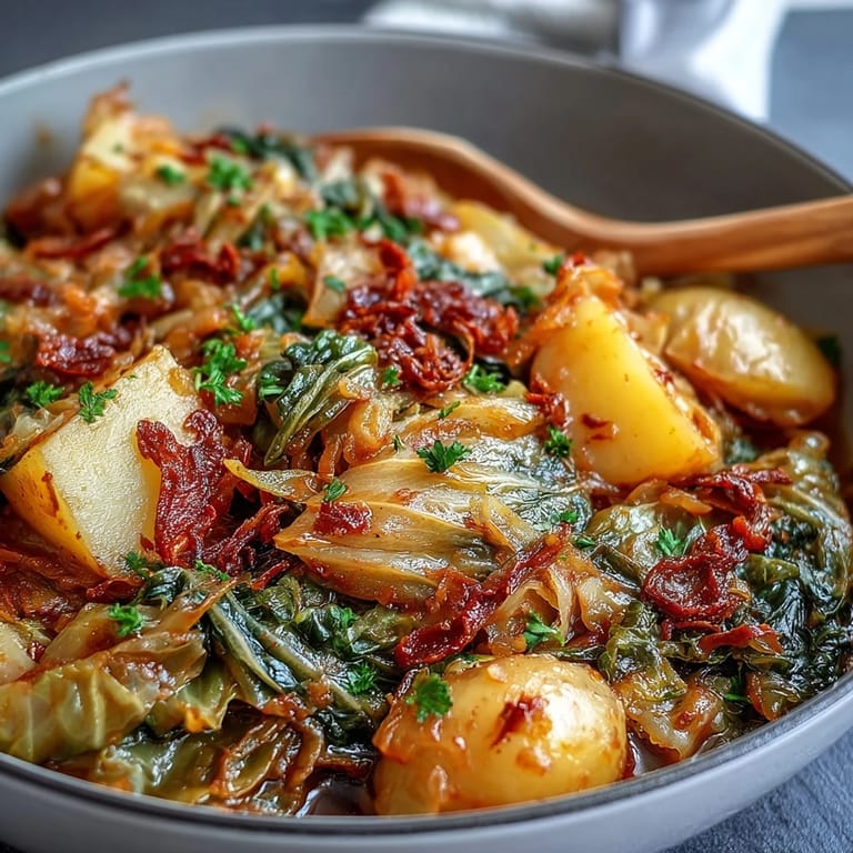Pin It The smell of butter and chili hitting the pot always takes me straight back to a rainy Tuesday when I had nothing but half a cabbage, some potatoes, and zero motivation to go shopping. I tossed them together with what was left in the spice drawer, and what came out was this warm, silky braise that tasted like I'd been planning it all week. My neighbor knocked just as I was plating it, stayed for a bowl, and declared it better than her grandmother's version. I didn't have the heart to tell her it was an accident.