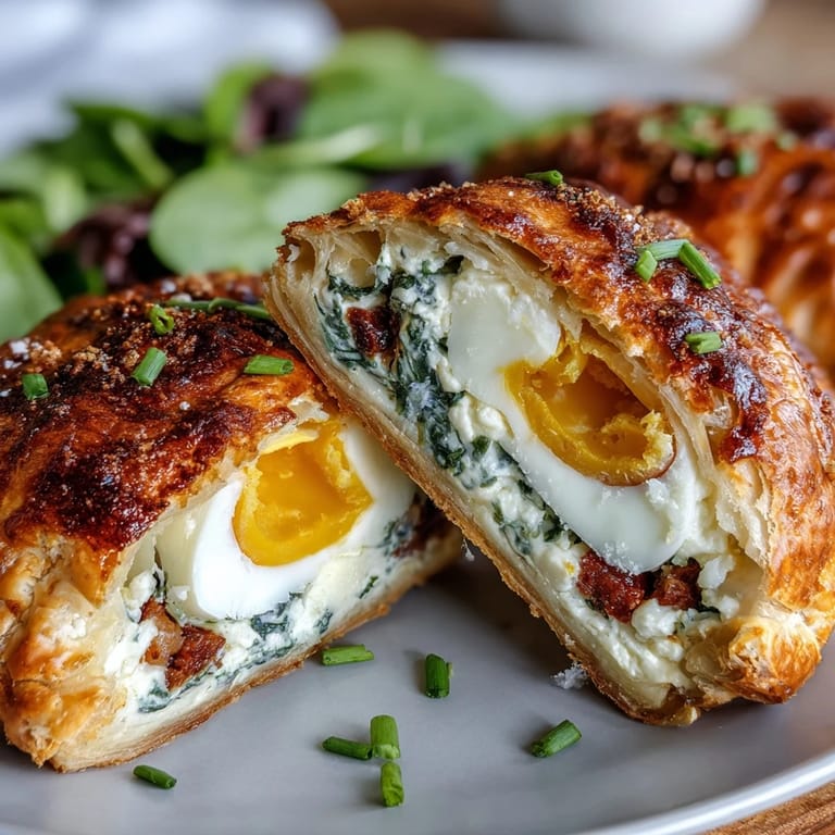 Pin It I remember my sister taking a photo of her slice before eating it, and I teased her about it until I saw the image—those eggs in perfect cross-section, the golden pastry, the creamy filling layers—and realized she was onto something. Food that looks this good tastes even better somehow, like the care you put into making it actually seasons the dish.