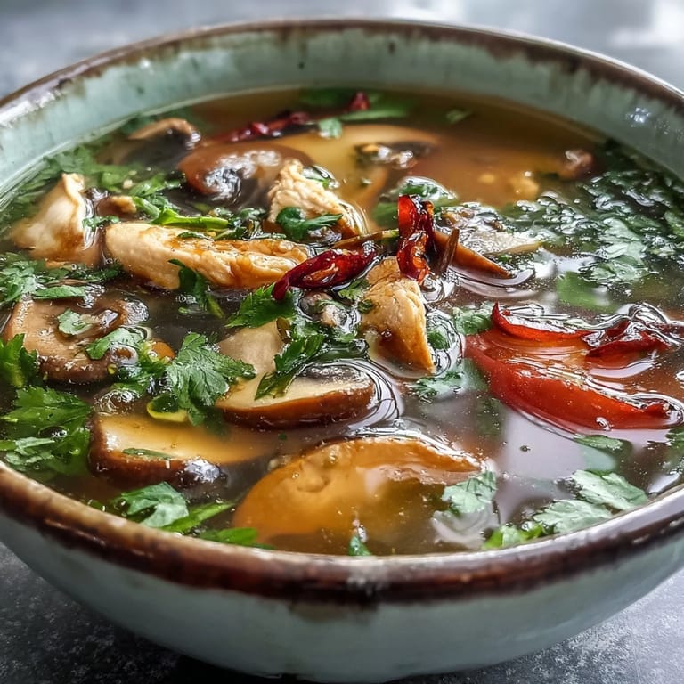 Pin It My first bowl of Tom Yum Gai arrived on a humid Bangkok afternoon when I wandered into a small soi restaurant, completely lost and starving. The first spoonful hit me like a revelation—that sharp lime brightness cutting through heat, the lemongrass perfume rising with the steam, chicken so tender it dissolved on my tongue. I spent the next week chasing that exact feeling in my own kitchen, learning that this soup isn't about following steps perfectly, but about building layers of flavor with intention and tasting as you go.